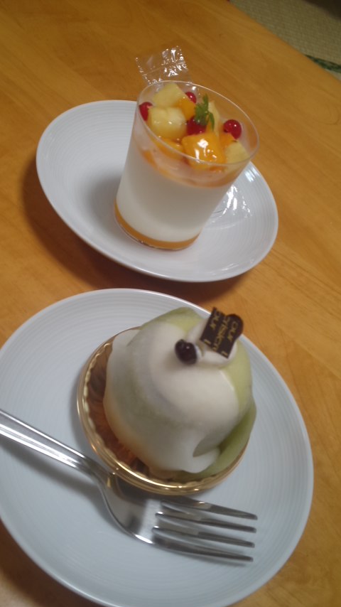 食後のデザートにケーキ屋で買ったケーキとプリン?