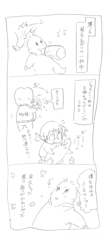 お風呂上がりの甥っ子に私がミルクあげていたら姪っ子が甥っ子の頭をベチッっと叩いたんです。