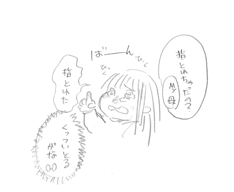この指を挟んだ後の姪っ子とMY母のやりとりも面白かったです。