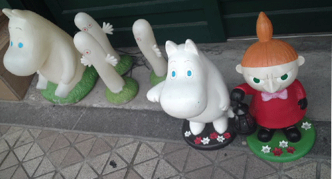 ショップの前には、ムーミン達のお人形が立ってます。