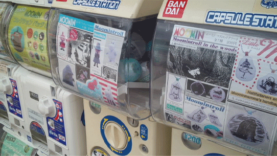 それから、このムーミンショップの前にはムーミンのガチャガチャがあるんです。