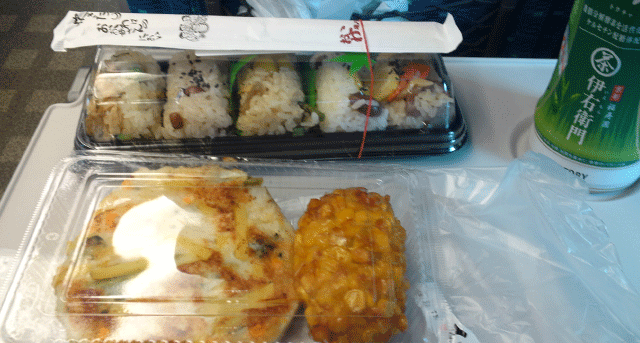 昨日から歩き回っているお陰で疲れていたのもあり、新幹線が動き始めたら早めの夕飯にしました。