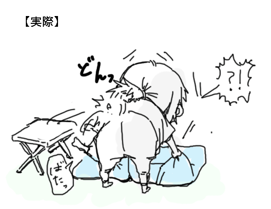 着地する場所に座布団を引いているんですが、姪っ子の跳ぶ距離が長かったので座布団位置を私が修正していたところ・・・