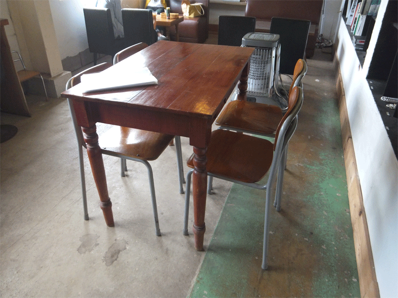 カフェの中の机や椅子が色んなところからかき集めた家具みたいで懐かしい学校椅子とかがありました。
