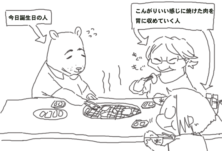 誕生日の人を祝うどころか肉焼き係りを最後までやってもらってしまいました。