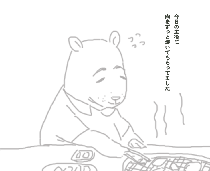 肉は、芋子ちゃんとトモ蔵君にまかせて私は、ただただ美味しく焼けた肉を食べました。