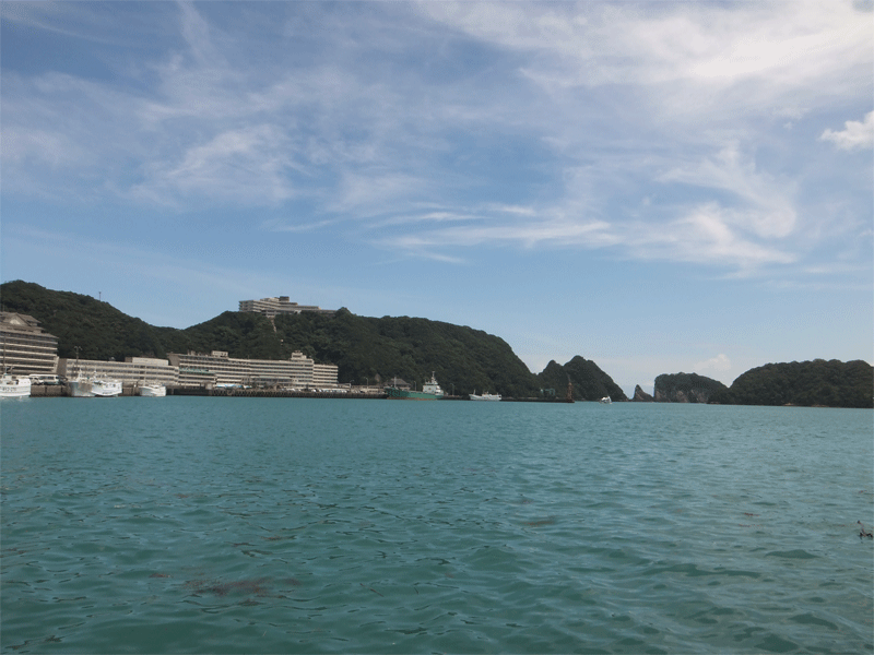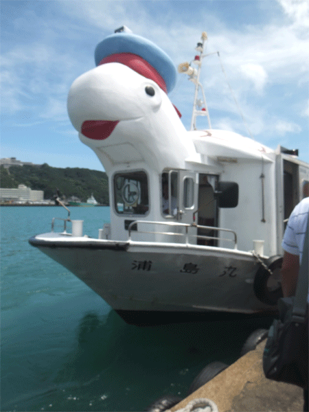 今回は、浦島丸ではなく普通の船でしたが、室内ではなく 海風に当たれる外の後ろ席に座れました。