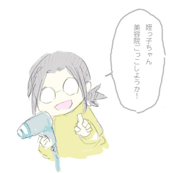 これがまた、姪っ子には、美容院で働くお姉さんの知り合いがいるので、姪っ子は、美容院ごっこをたまにやってくれます。